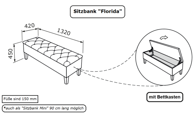 *auch als “Sitzbank Mini” 90 cm lang (Toleranz 2 cm) möglich.