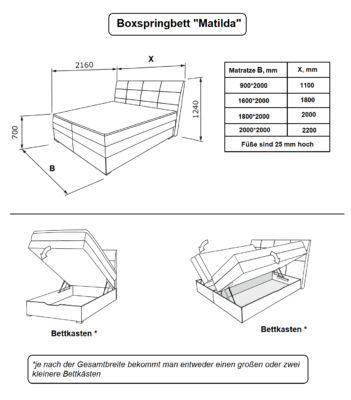 Für folgende Matratzen möglich (BxL): 90/160/180/200 x 200 cm