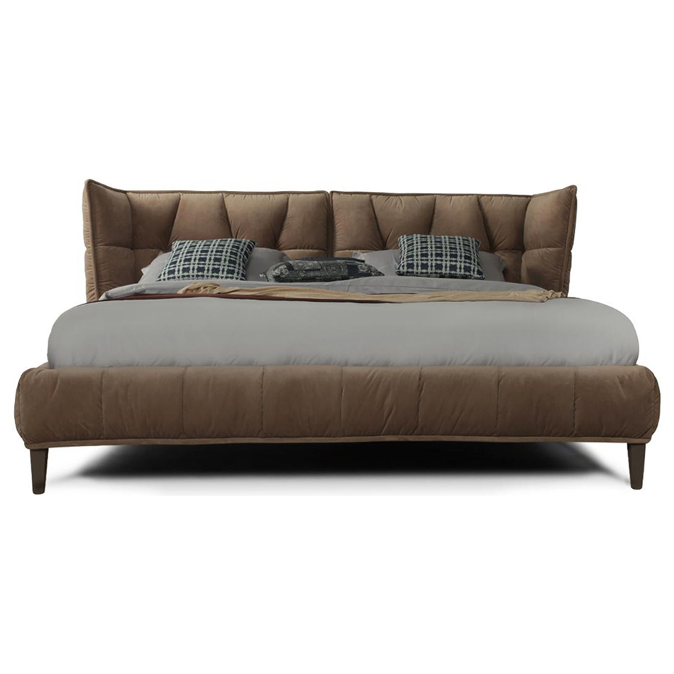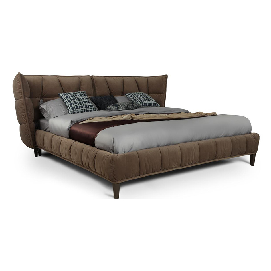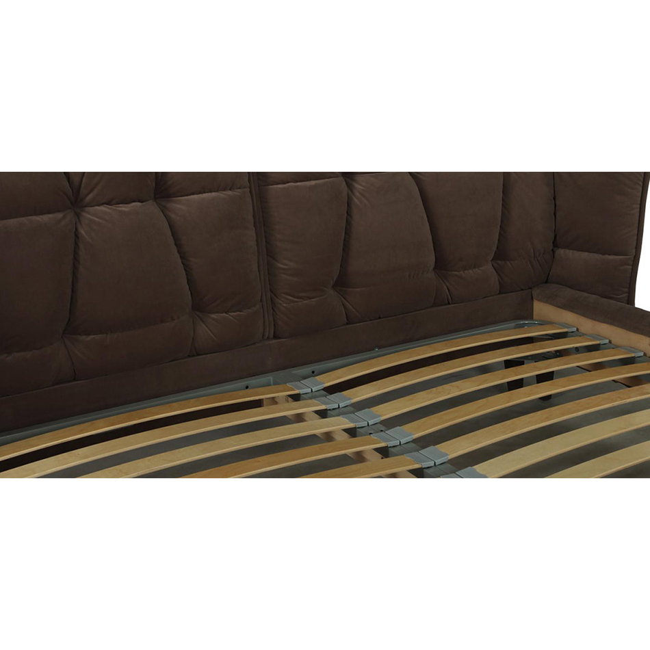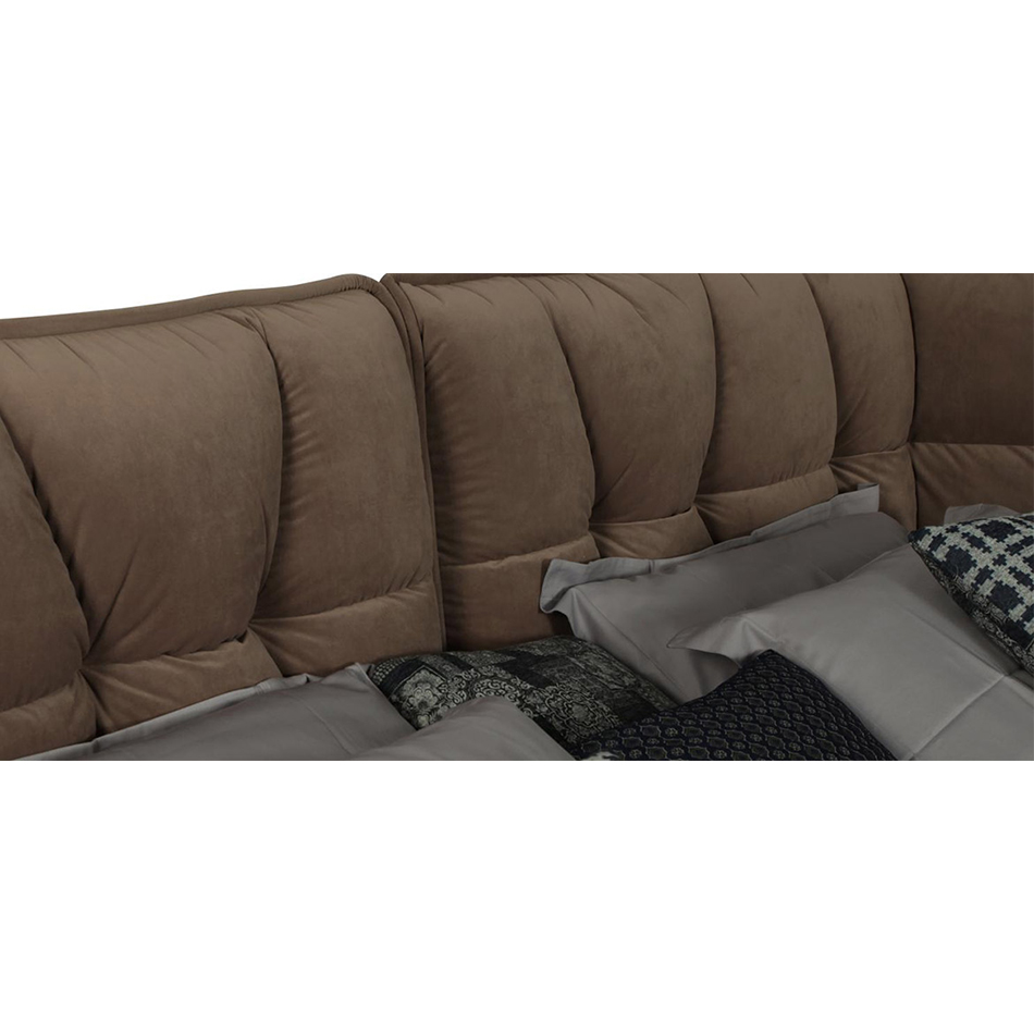 Geben Sie sich stilvoll zur Ruhe im Doppel-Polsterbett namens Florence. Das weich gepolsterte Kopfende lädt zum Anlehnen ein. Die Seitenenden sind eingerollt, schützen die Augen. Der Bogenträger besteht aus einer laminierten Holzspanplatte.