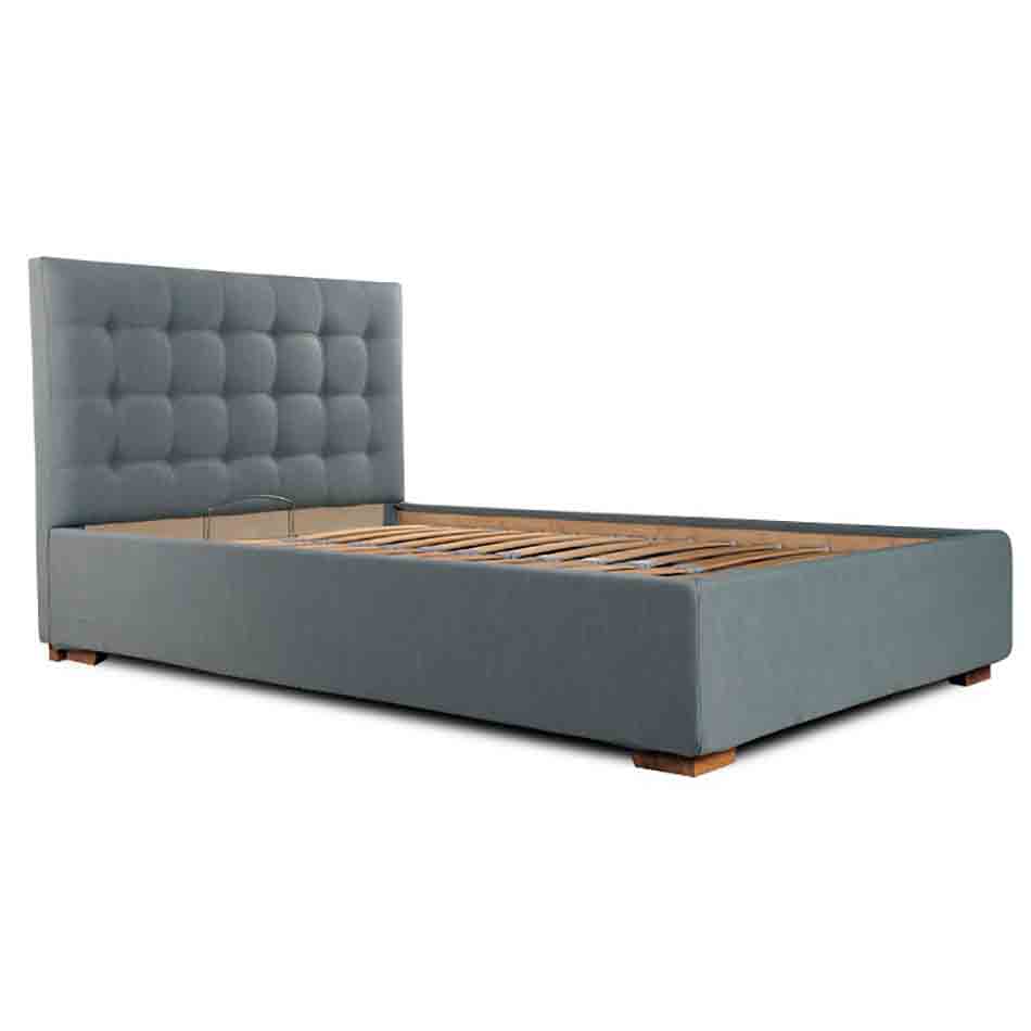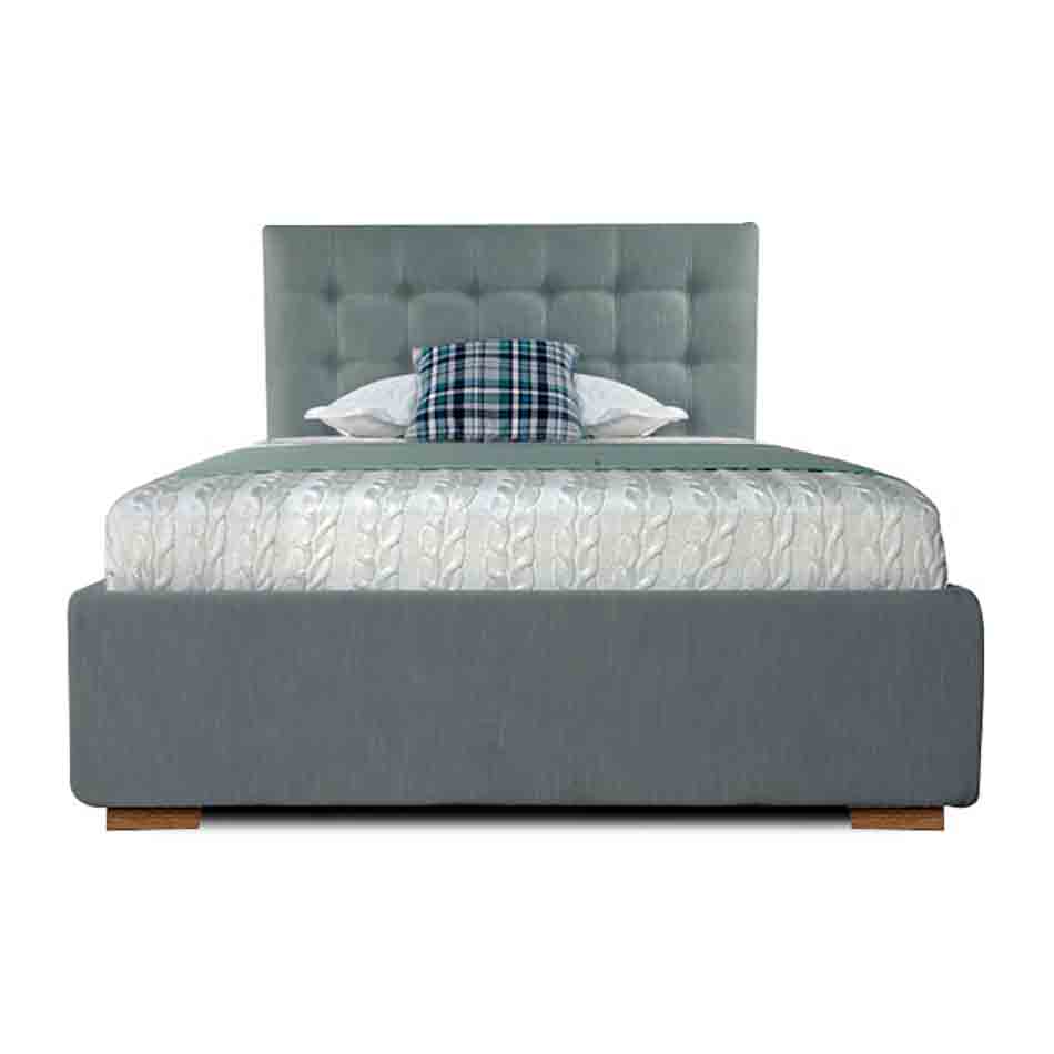 – Das Bettgestell mit gewähltem Stoff bezogen