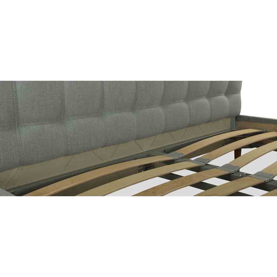 – Das Bettgestell mit gewähltem Stoff bezogen