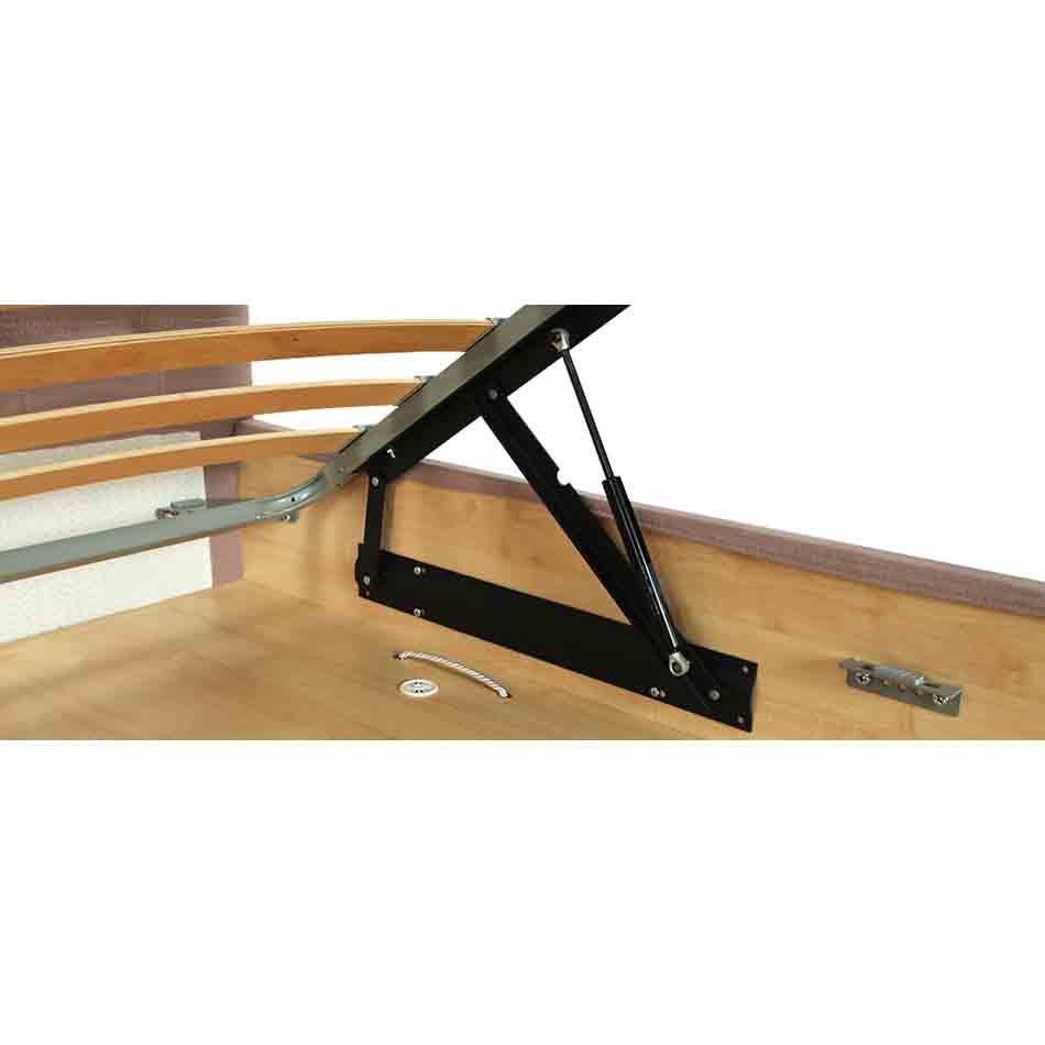 Das Bett GLORIA ist für große Matratzen mit einer Größe von 120 x 200, 140 x 200, 160 x 200, 180 x 200 oder 200 x 200 cm ausgelegt. Das Modell mit Bettkasten verfügt über einen Hebemechanismus. Dank Gasdruckstangen kann die Matratze bequem hochgeklappt werden, sodass der Bettkasten leicht zugänglich ist. Der Bettkasten bietet jede Menge Stauraum und sorgt für Ordnung im Schlafzimmer. Dem Bett mit Bettkasten dient ein Rahmen aus einem Metallprofil mit Holzlamellen als Basis für die Matratze. Das Modell ohne Bettkasten kann mit einem Standard-Lattenrost ausgestattet werden.