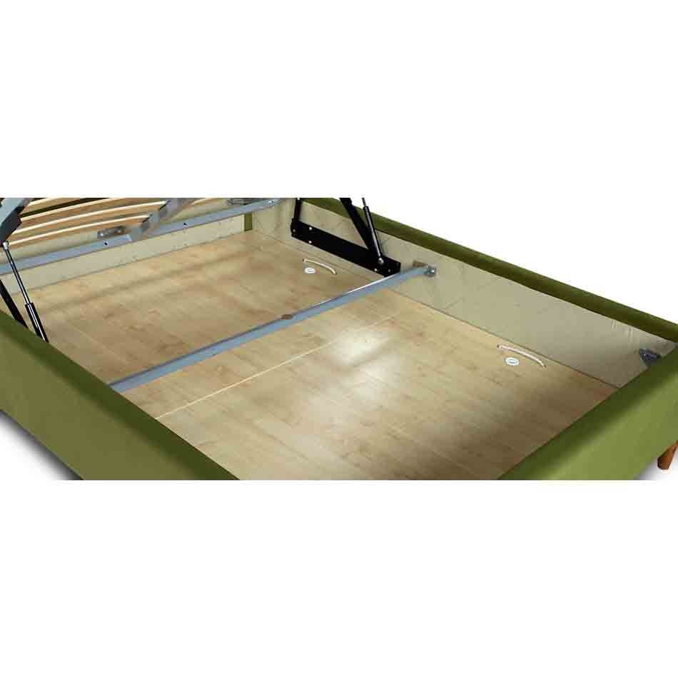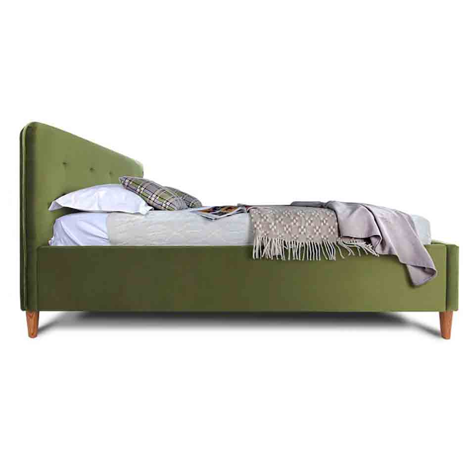 – Das Bettgestell mit gewähltem Stoff bezogen