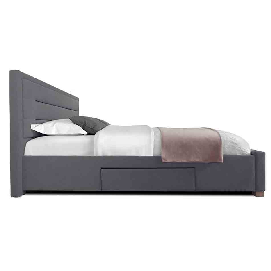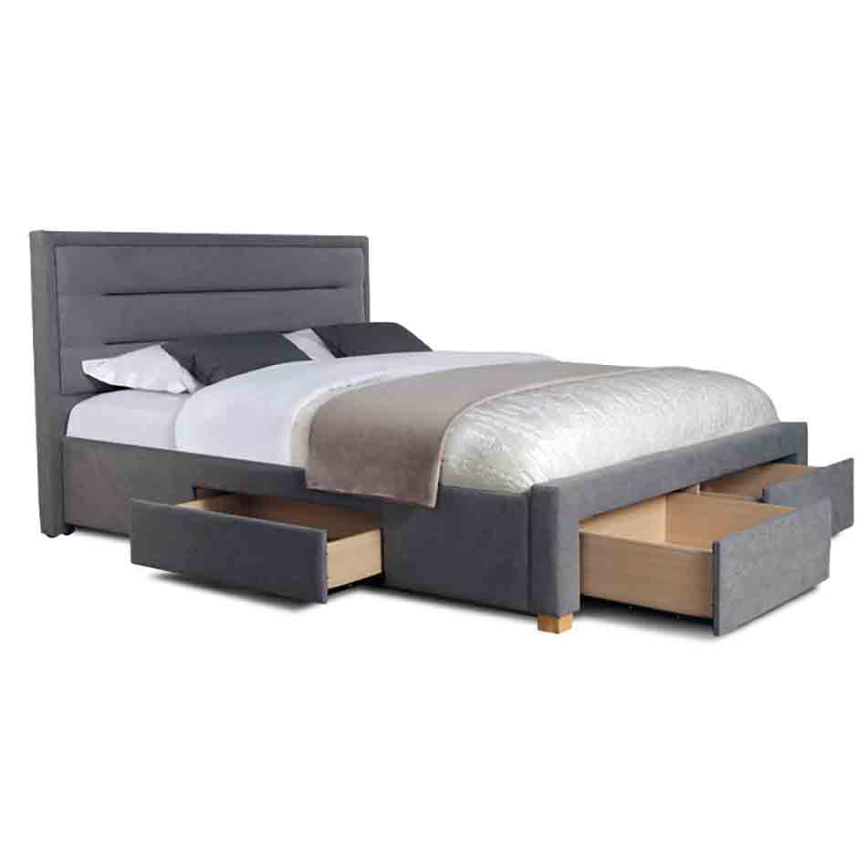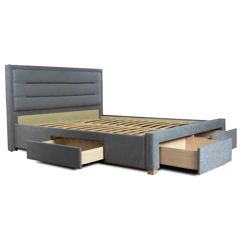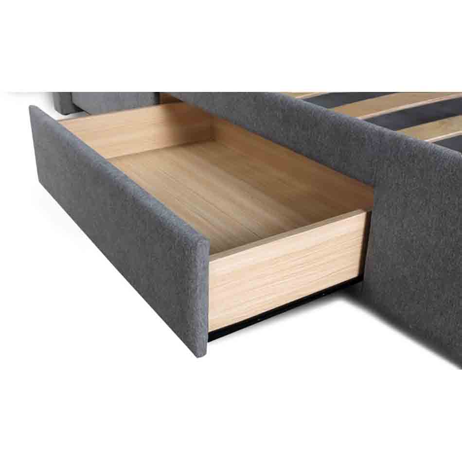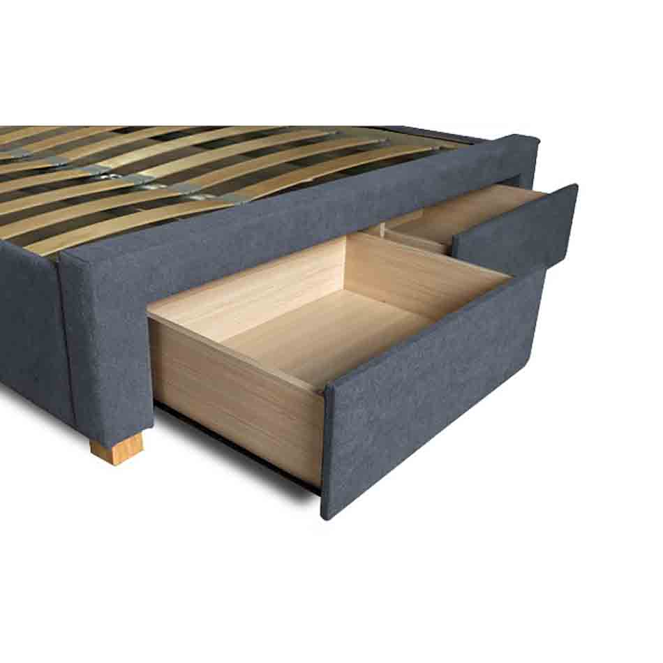 Insgesamt vier Schubläden (einer auf jeder Seite und zwei am Fußende) mit Böden aus 4 mm dicken, laminierten Spanplatten bieten genug Raum, um Bettwäsche oder andere Dinge zu verstauen und helfen somit Ordnung im Schlafzimmer zu halten. Jede Schublade befindet sich auf einer leichtgängigen Rollenführung, die ein einfaches Herausziehen ermöglicht.