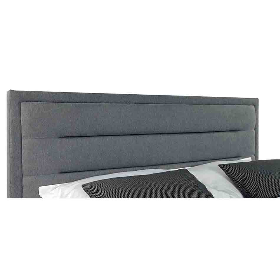 Das Bett „Nevada“ vereint dekoratives Design mit praktischen Details. Das Kopfende des Bettes ist mit zurückgezogenen Nähten verziert, die eine schöne Relief-Optik an der sichtbaren Vorderseite bilden. Dieses Bauteil ist mit einem Block aus Polyurethanschaum (PUR) gefüllt, der eine Dichte von 200 g pro m² hat und dadurch eine weiche und bequeme Fläche zum Anlehnen bietet. Die qualitativ hochwertigen Nähte sind in der Farbe des Hauptmaterials gehalten. Abgerundet wird das Design durch einen schmalen Bettkasten mit leicht erhöhtem Fußteil und sichtbaren, stabilen Stützbeinen aus Hartholz (Esche). Das gesamte Gestell besteht aus Span- und Sperrholzteilen vom Nadelholz.