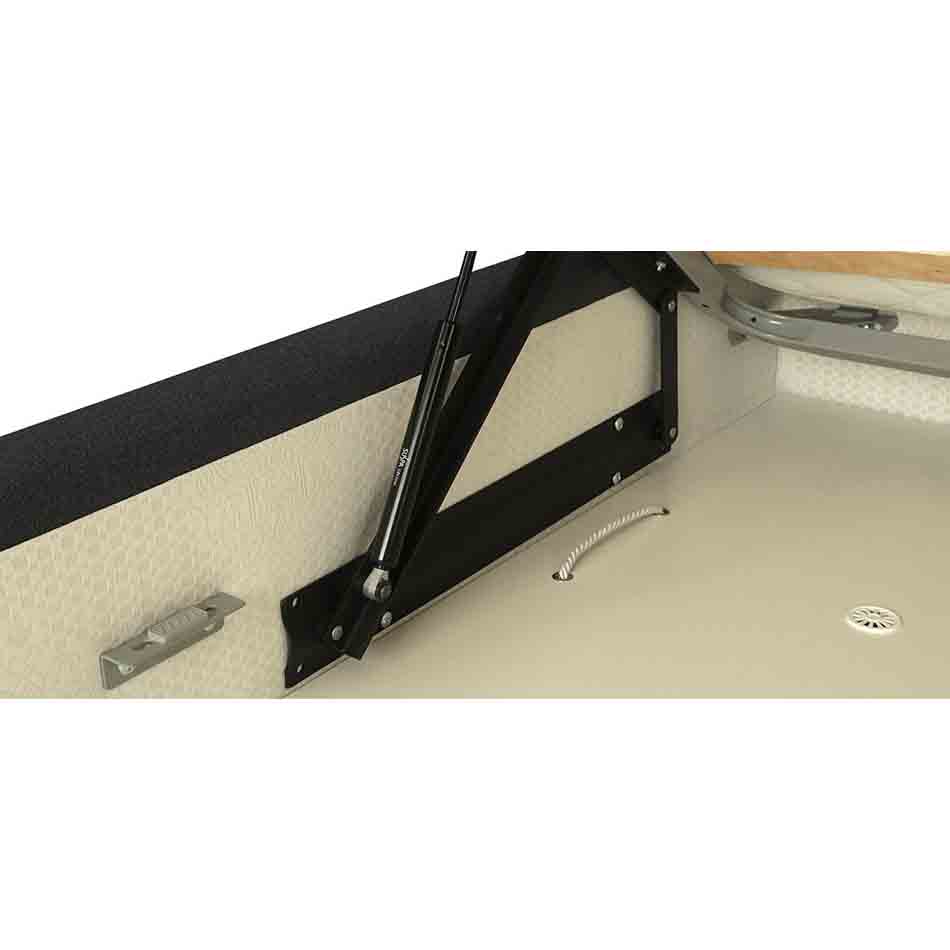 Der Hebemechanismus ist leicht zu bedienen und erleichtern das Anheben der Matratze für den Zugang zu der Leinennische, wo genug Stauraum für ihr Bettzeug ist. Der Boden des Stauraums besteht aus laminierten Spanplatten. Eine Version des Bettgestells ohne den extra Stauraum ist erhältlich.