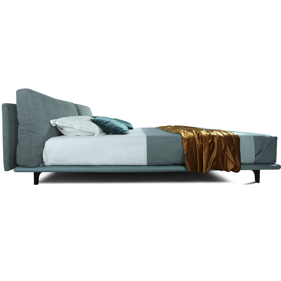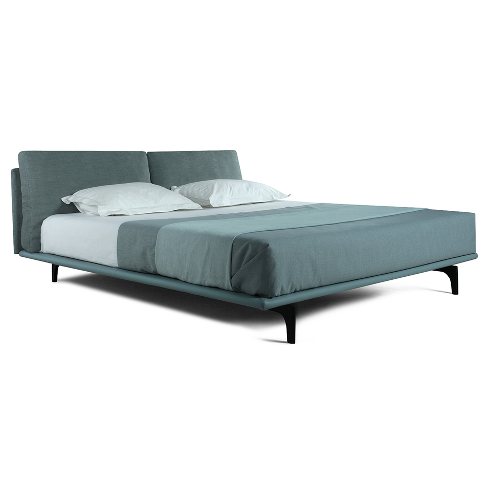 Die schlichte, aber dennoch elegante Form fügt sich ein in jeden Raum und wurde speziell für offene Layouts und moderne Innenräume entwickelt. Mit seinen schmalen Kanten und schwarzen, schlanken Beinen aus Metall kann das Bett sehr gut für sich stehen und verliert dennoch nicht an Ästhetik.