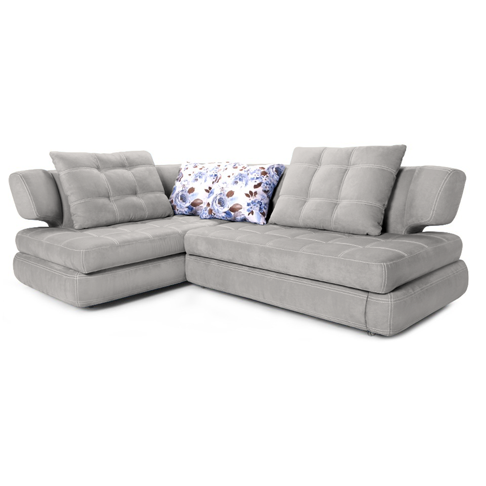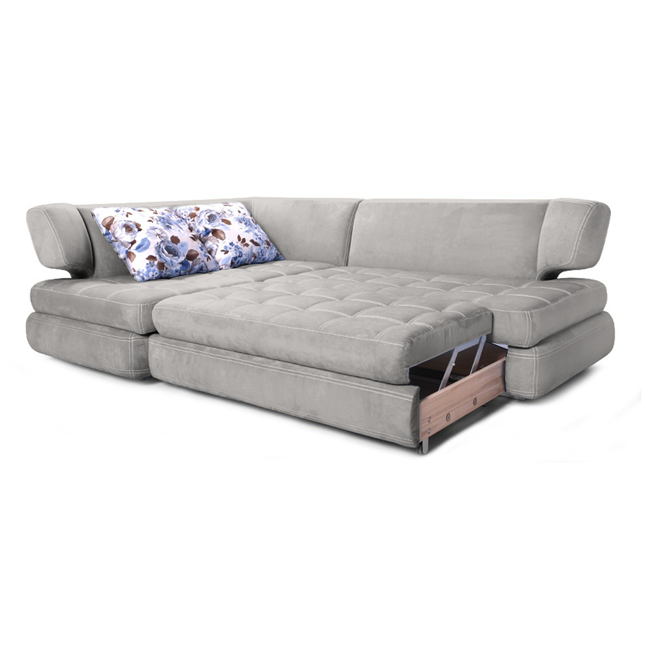 Belag: Elastische Bänder sind auf dem Sattelteil des Rahmens gespannt. Die Füllung der Polstersattelteile ist HS35-30 mit Silikonfaser. Der Bodenträger der Lehne wird auf dem Hauptteil der Konstruktion mit der Bolzenverbindung befestigt. Das Ecksofa ist mit integriertem Wäschekorb erhältlich.