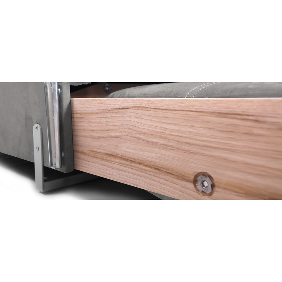 Verwandlungsmechanismus: Bei dem Mechanismus «Delphin» wird der Kasten aus Hartholz, stirnseitigen Blattholzlatten (10 mm) und montierten Federmechanismen hergestellt. Die Bewegung beim Öffnen ist angenehm leicht durch die von der Grundkonstruktion unabhängige Position des Ausrollteils. Die Größe der Schlaffläche beträgt 1360 x 1950. Die Tragfähigkeit der Liegefläche beträgt 160 kg.