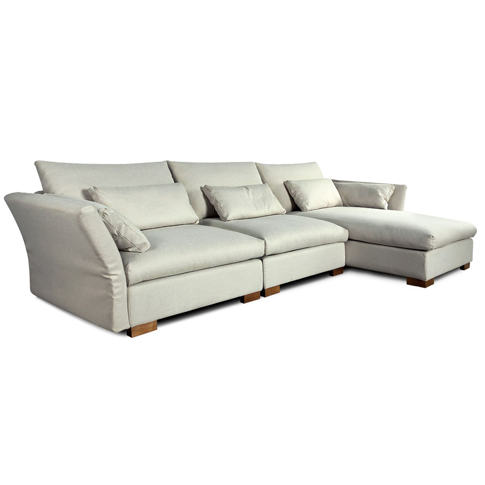 Mögliche Varianten: Sofa 2-Sitzer, Sofa 3-Sitzer, Ecksofa, Modulsofa (Wohnlandschaft) Polsterung: Holzgestell, elastische Bänder, Polyurethanschaum, Daunenfeder Verwandlungsmechanismus: nicht vorhanden Füße: Hartholz (Esche) Sonstige Eigenschaften: – hochwertige Daunenfederfüllung im Sitzer – verstellbare Armlehne von 0 bis 90 Grad (bis 320mm)