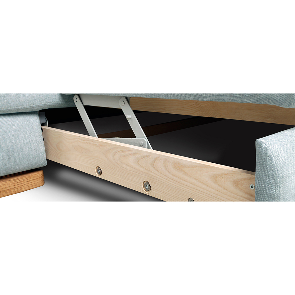 Der Bodenträger des Sofateils ist aus Blattholzlatten (15 mm) hergestellt. Die Rückenlehnen und Armlehnen des Modells sind aus Blattholz und Holzspanplatte-Teilen angefertigt. Alle tragenden Elemente sind aus Nadelholzbalken hergestellt. Der Bodenträger des Schlafmoduls ist aus Holz angefertigt. Der Schlafabschnitt wird aus Holzrahmen und Sperrholzboden gebildet.