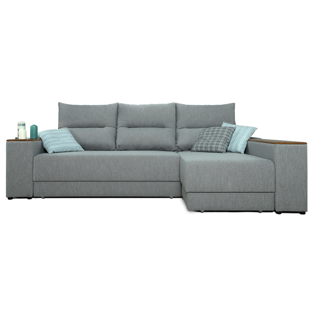 Das Ecksofa verfügt über eine Chaiselongue (Ottomane), dass je nach Wahl links oder rechts angebracht ist. Die längliche Armlehne an der Chaiselongue sorgt für besten Sitzkomfort. Die zweite Armlehne wirkt ebenfalls dekorativ und sorgt für eine angenehme Haltung beim Sitzen. Zusätzlich können die Armlehnen als Abstellfläche verwendet werden. Für einen gemütlichen Fernsehabend ist es eine ganz tolle Sache. Bequem ist das Sofa ohnehin. Bei den Kissen und Sitzflächen entscheidet der Kunde über das Material. Möglich ist eine Federeinheit in Kombination mit Polyurethanschaum der Marke EL2842 und Sinnepon. Die zweite Alternative ist eine der Kombinationen von Polyurethanschaumstoffblöcken der Klassen EL3542 / ST2535, HS3530 / ST2535 mit einem 100 g / m2 Dichte Synthepon.
