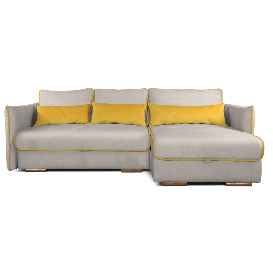 Ecksofa Tutti in einer Farbkombination bezogen (Farbe Nr. 1 – Basisfarbe, Farbe Nr. 2 – Kanten und die kleinen Kissen x3 St.)