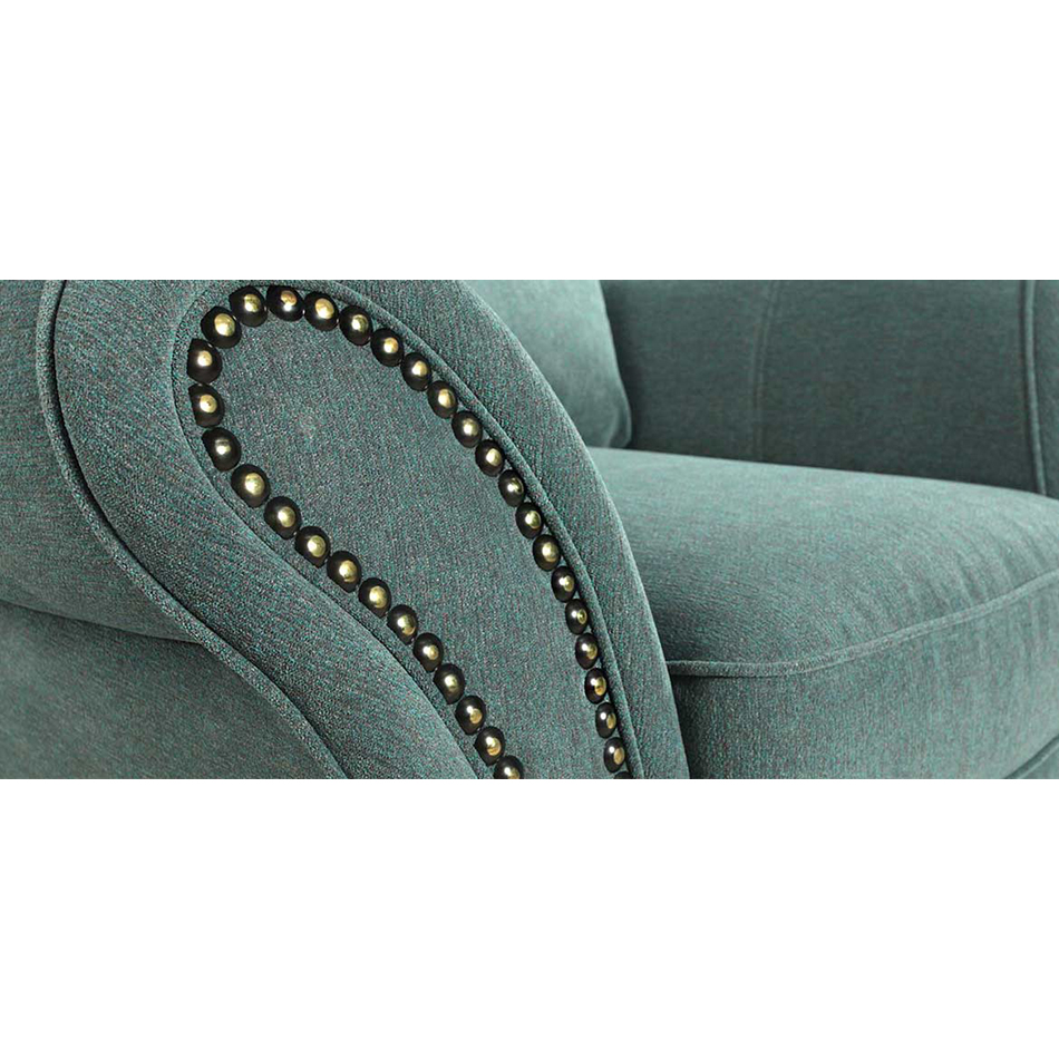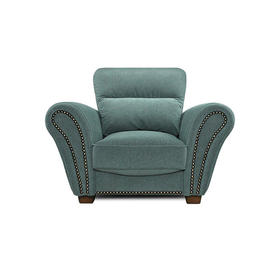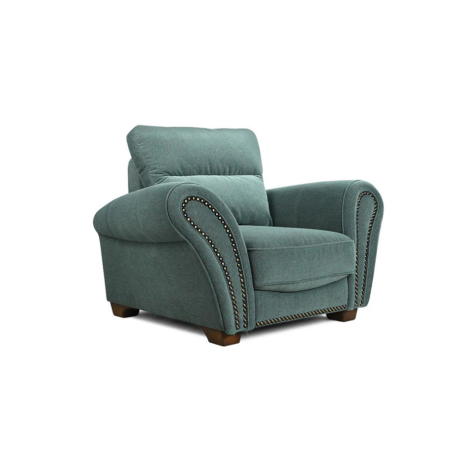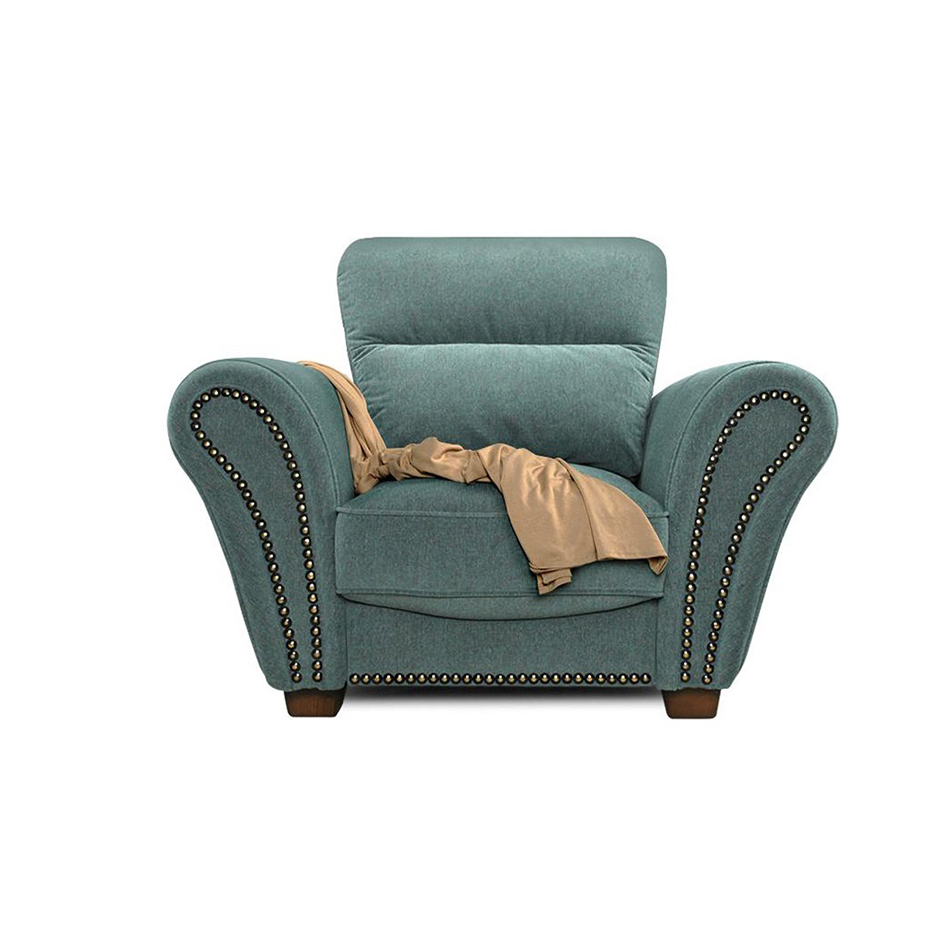Sessel «RICHARD» – das Modell ist durch und durch englisch. Dekorative Nägel aus Metall mit einem Durchmesser von 20 mm, die an der Vorderseite der Armlehne und dem Boden der Zarge angebracht sind, geben dem Sessel ein klassisches Aussehen. Der Hauptvorteil dieses Modells ist die Verwendung natürlicher Materialien und eine angenehme Weichheit.